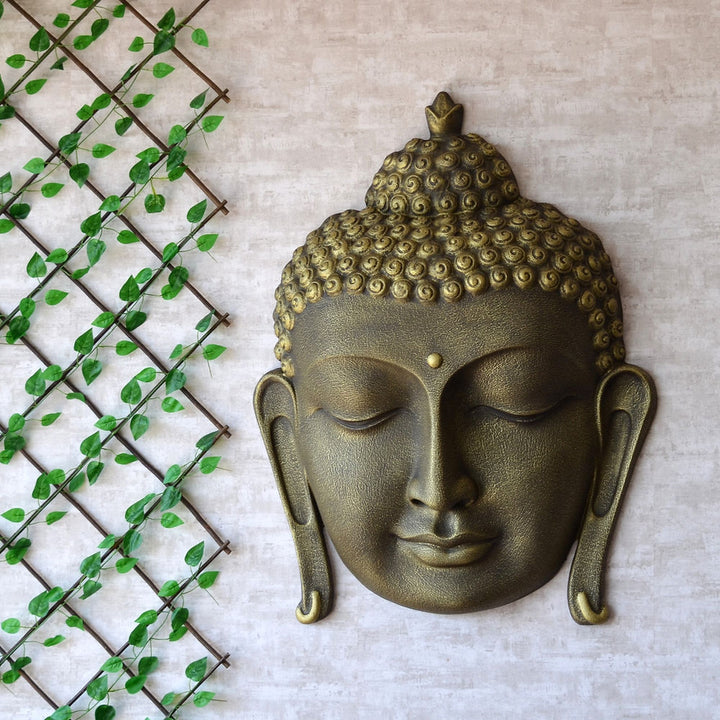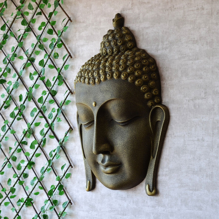 Buddha Face Wall Green Antique