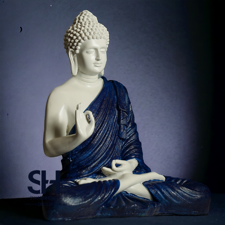 Buddha Sculpture White Blue