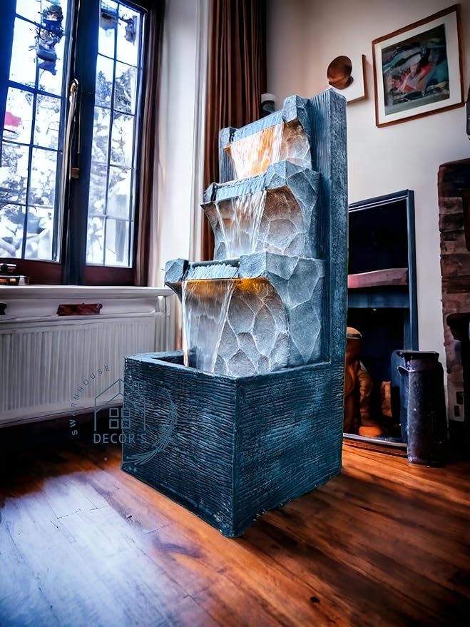 Crafted from high-quality fiber, our water fountain combines durability with elegance. Perfect for enhancing outdoor spaces like gardens, lawns, and porches, it's a standout piece from our exclusive collection at Swarnhouse. Designed by Swarnhouse Décor, this fountain blends seamlessly into both modern and contemporary interiors, thanks to its sleek and timeless design.