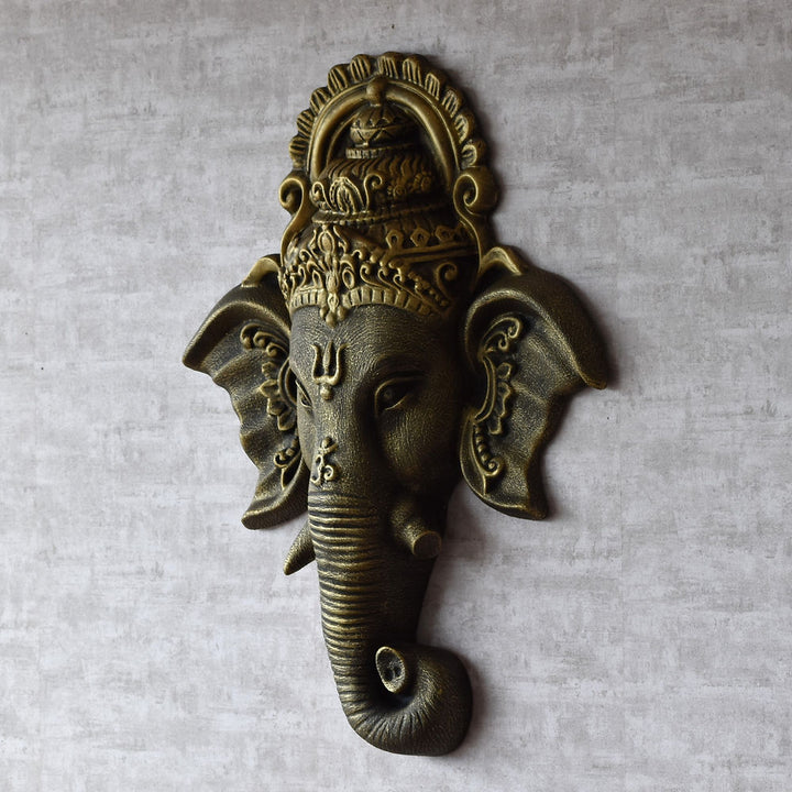 Ganesha Face Wall Green Antique