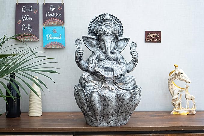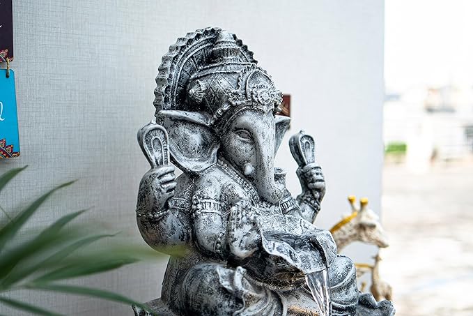 Ganesha Fountain 2 feet Sculpture Silver Grey