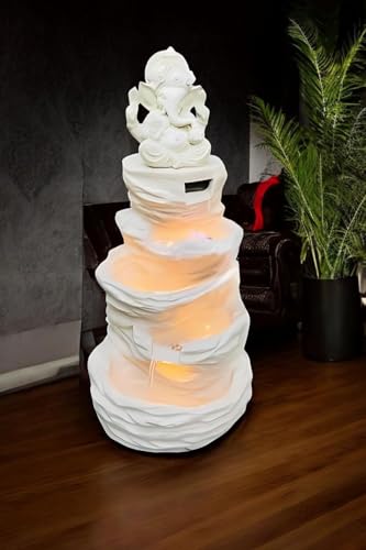 Swarnhouse 4 Feet Spiral Ganesha/Buddha Water Fountain, Decorative Garden Fountain with LED Lights Design 4