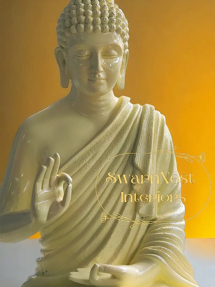 Swarnhouse Beautiful Sitting Buddha Idol Statue for Home & Garden 2 FT – Premium Cream Full Glossy