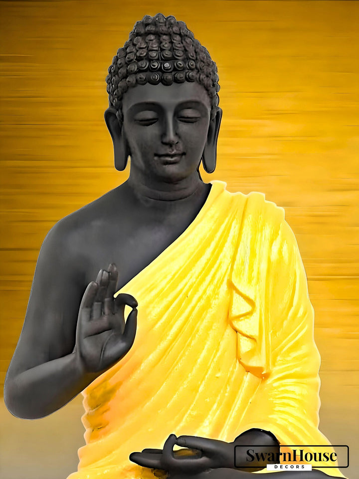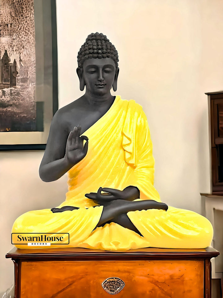 Swarnhouse Beautiful Sitting Buddha Idol Statue for Home & Garden 2 FT – Premium Orange & Black Matte Finish