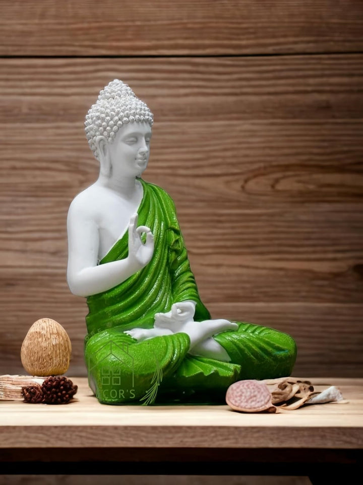 SWARNHOUSE DECORS® THE HEALING SPIRIT BLESSING BUDDHA STATUE (1.25 FEET, GREEN )