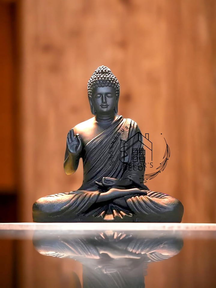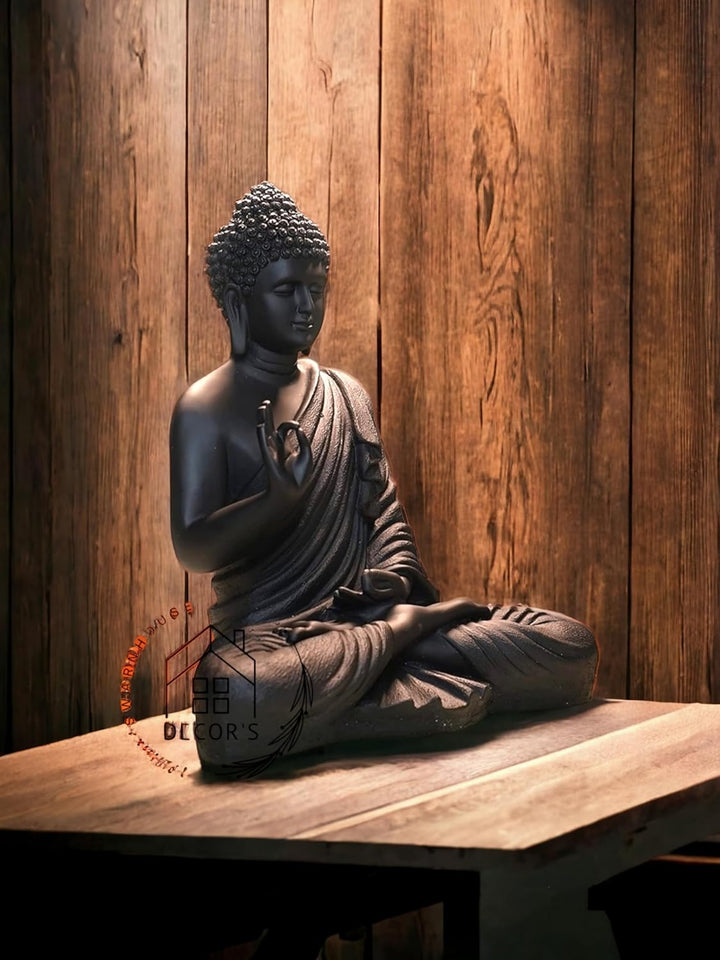 SWARNHOUSE DECORS® THE HEALING SPIRIT BLESSING BUDDHA STATUE ( 1.25 FEET, MATT BLACK )