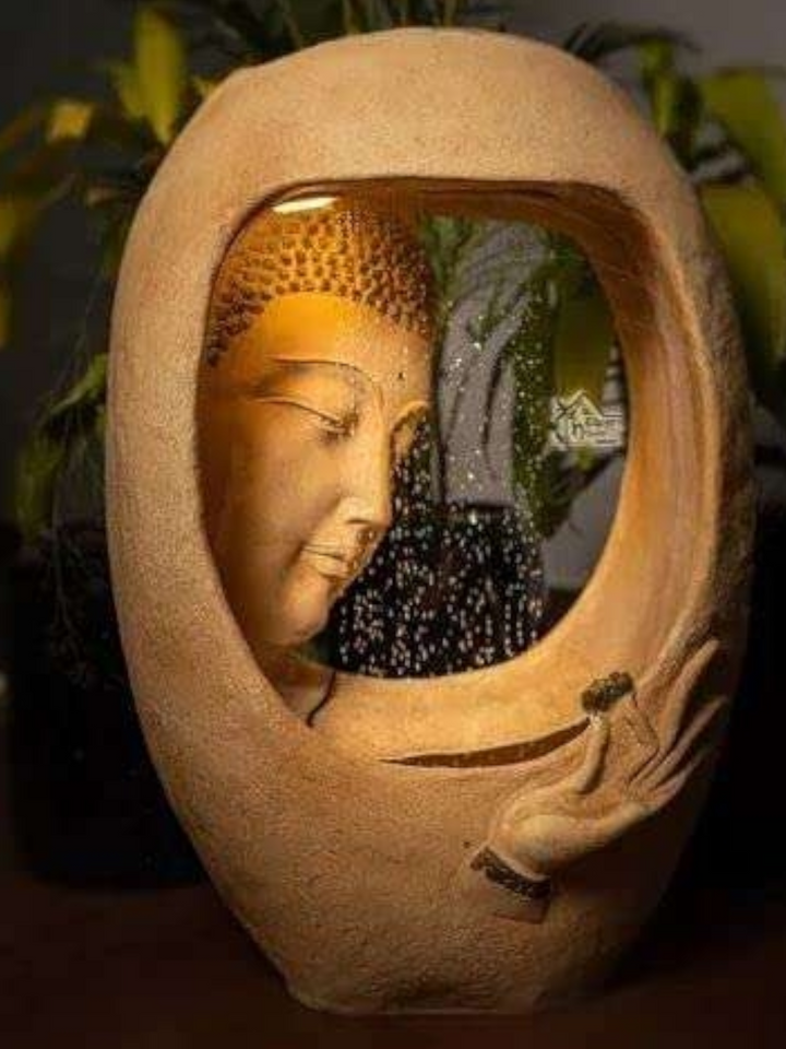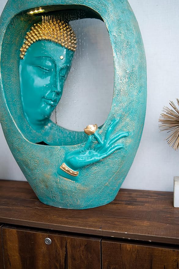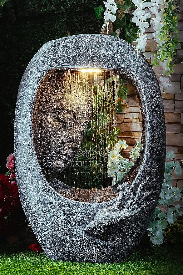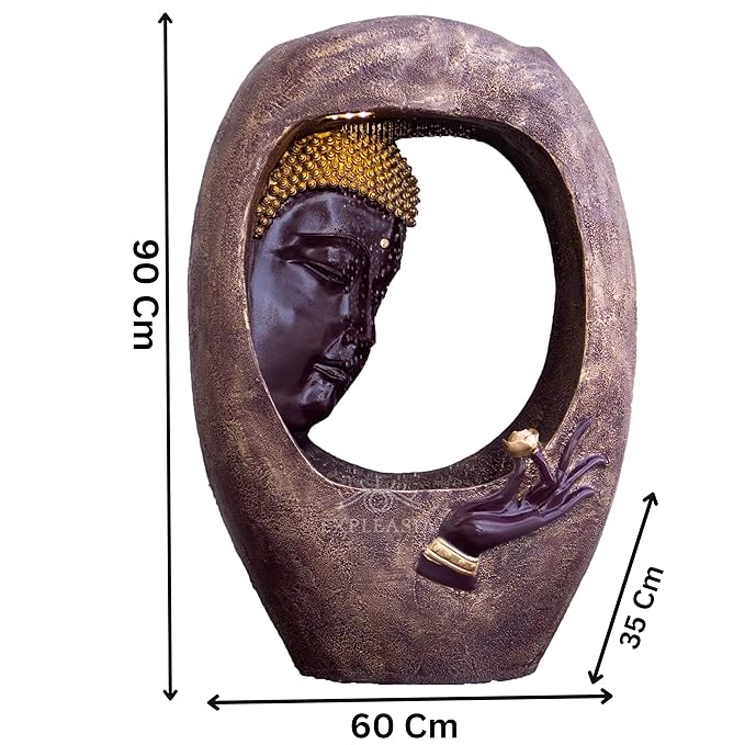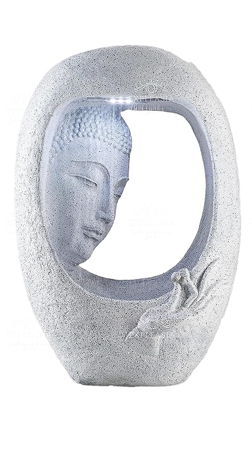 Swarnhouse Designer Buddha Oval Shape Water Fountain for Home, Office, Garden Cream Color Large Size – 3 FT|