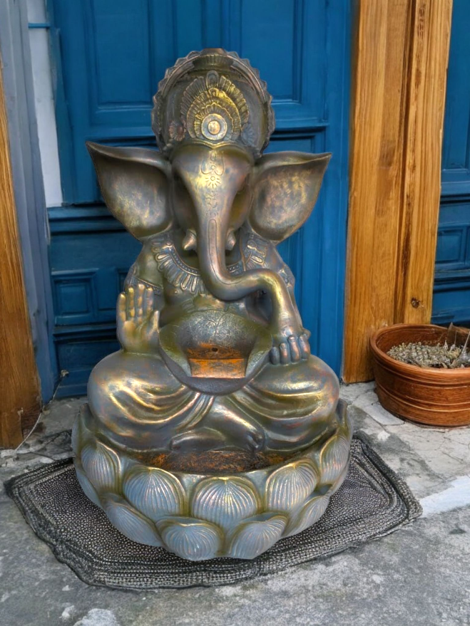Swarnhouse Lord Ganesha Decorative Water Fountain, 3 Feet Tall, Lotus Base, Indoor Outdoor Garden Decor (Article 3)
