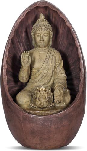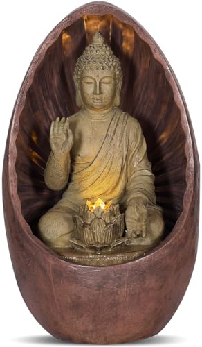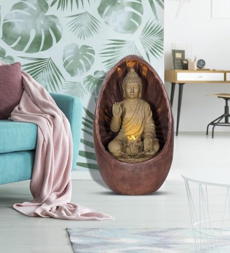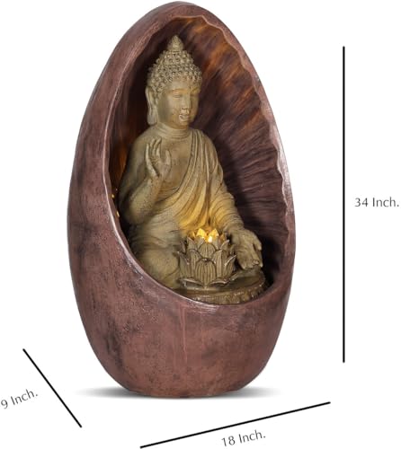 Swarnhouse Oval Buddha Water Fountain with LED Light, 3 Feet Tall, Indoor Decorative Zen Garden (Buddha 1)