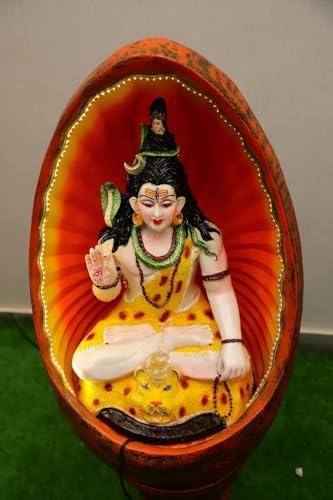 Swarnhouse Oval ShivJI Water Fountain with LED Light, 3 Feet Tall, Indoor Decorative Zen Garden (ShivJI)