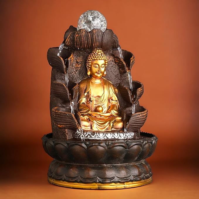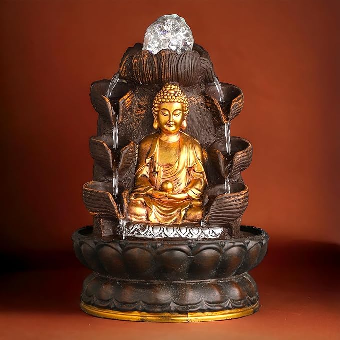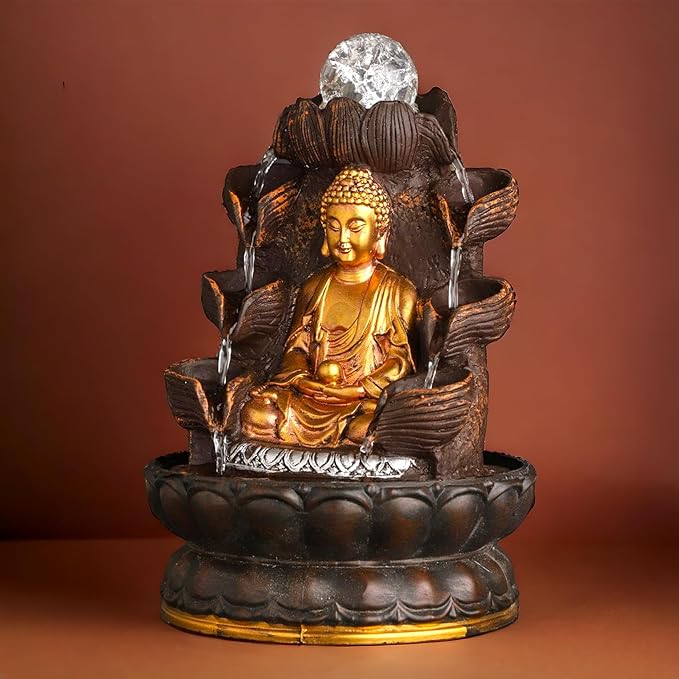 Swarnhouse Polyresin Water Fountain with LED Lights - Indoor/Outdoor Tabletop Decor for Home and Gifts