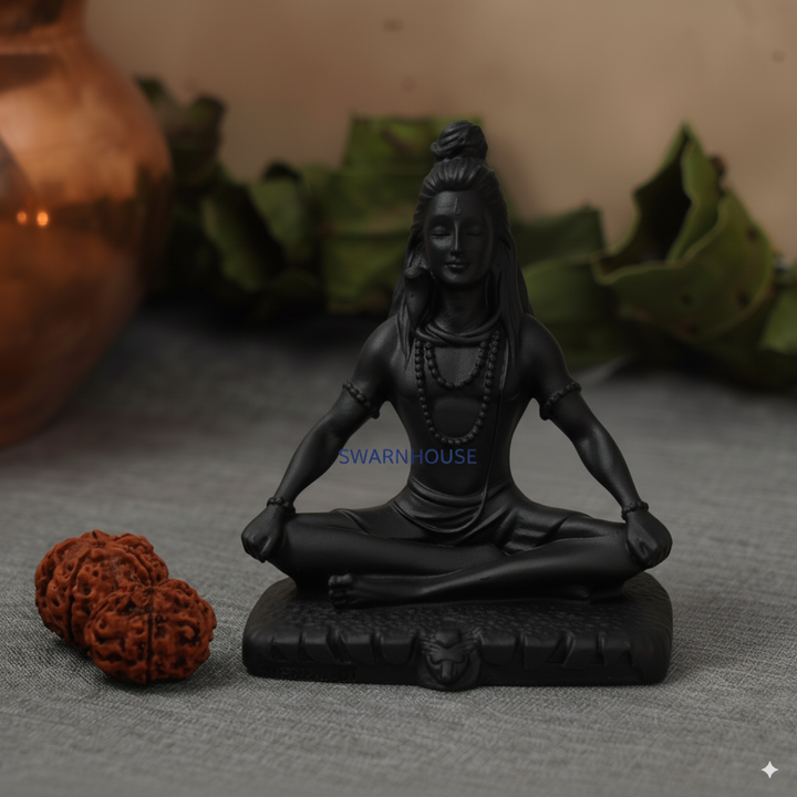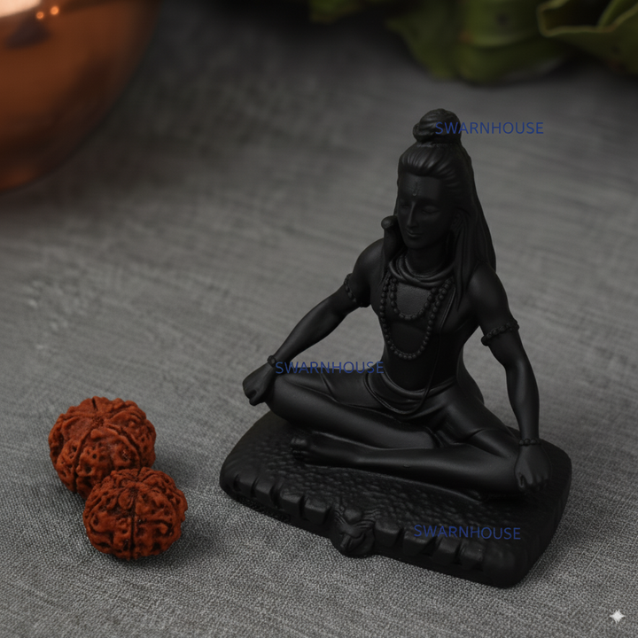 Swarnhouse Resin Mystical Lord Shiva Idol Shiv Murti Mahadev Statue Handcrafted Lord Shiva Murti for Home Decor Shivratri Mandir Temple Housewarming 4 Inch Black