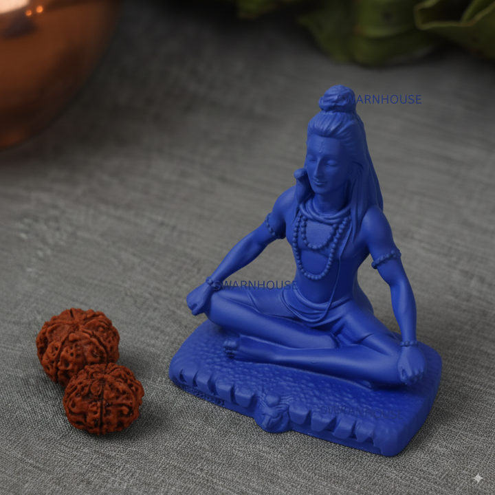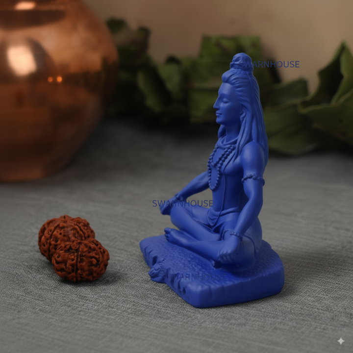 Swarnhouse Resin Mystical Lord Shiva Idol Shiv Murti Mahadev Statue Handcrafted Lord Shiva Murti for Home Decor Shivratri Mandir Temple Housewarming 4 Inch Blue